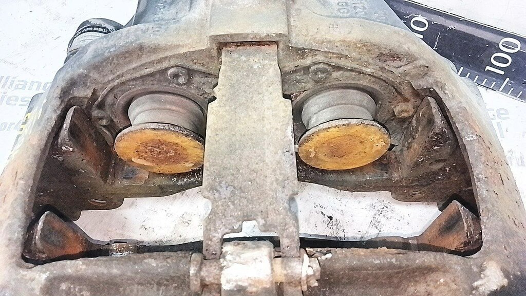 На главную / ДЕТАЛИ Б/У / Тормозная Система / Суппорт / суппорт тормозной левый б/у \ Люфт в скобе, пальники направляющих порваны
